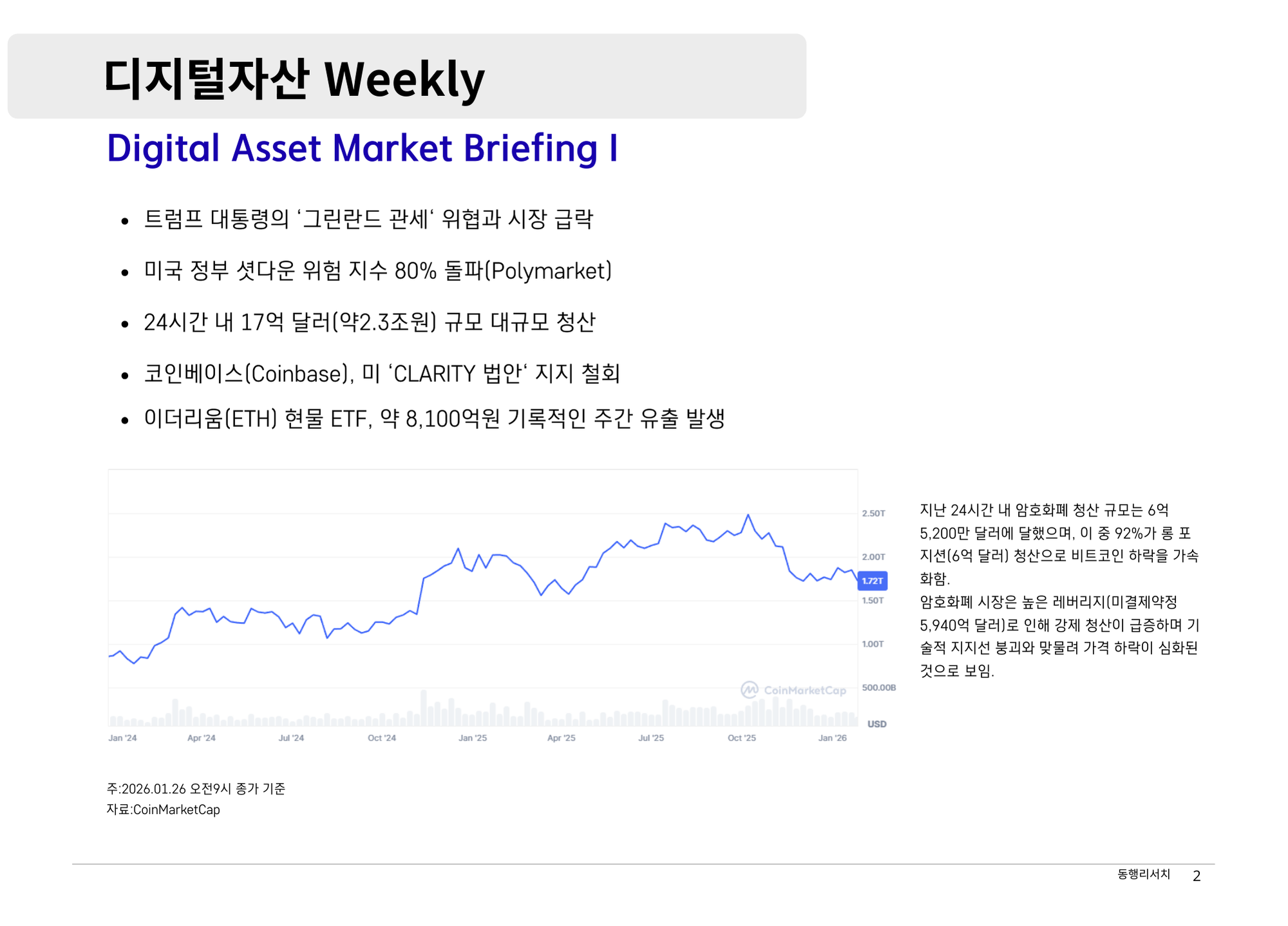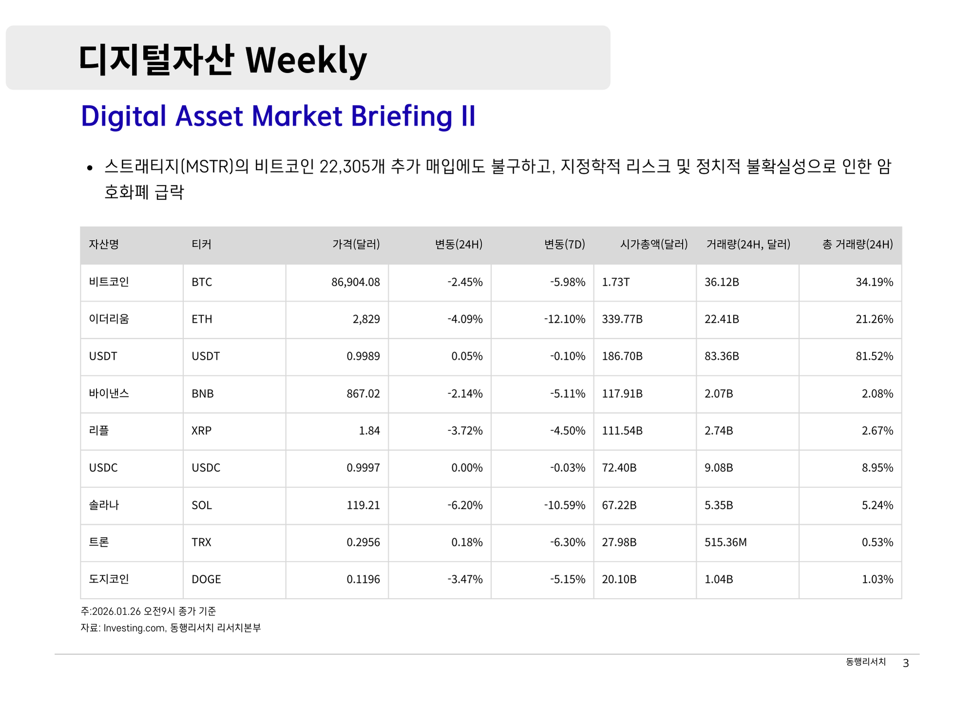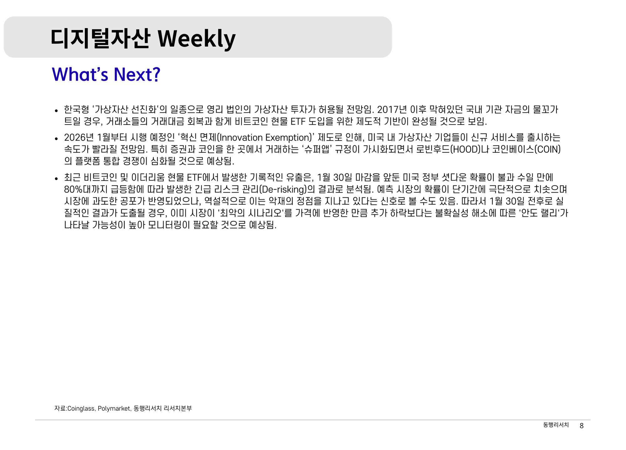 가상자산 [2026.1.26] 디지털자산 Weekly - 제도권 자본의 신뢰도를 시험하는 중요한 변곡점 나눔인사이트매니저 520 8 0 2026.01.26 21:50 260126_디지털자산_위클리.pdf 다운로드