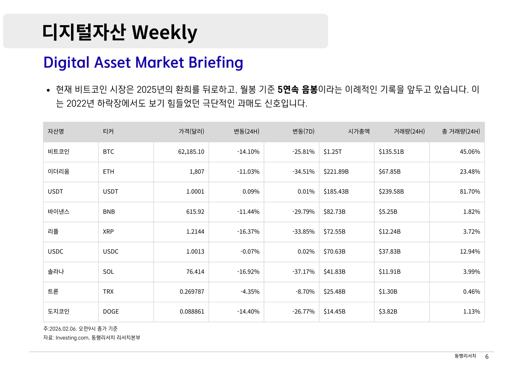 [2026.2.6] 디지털자산 Weekly - 암호화폐 시장의 구조적 전환과 항복