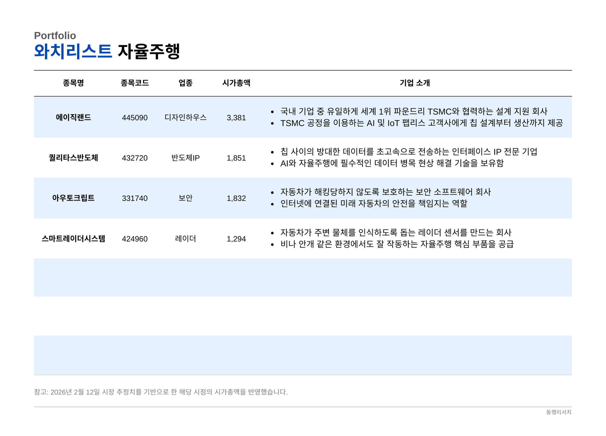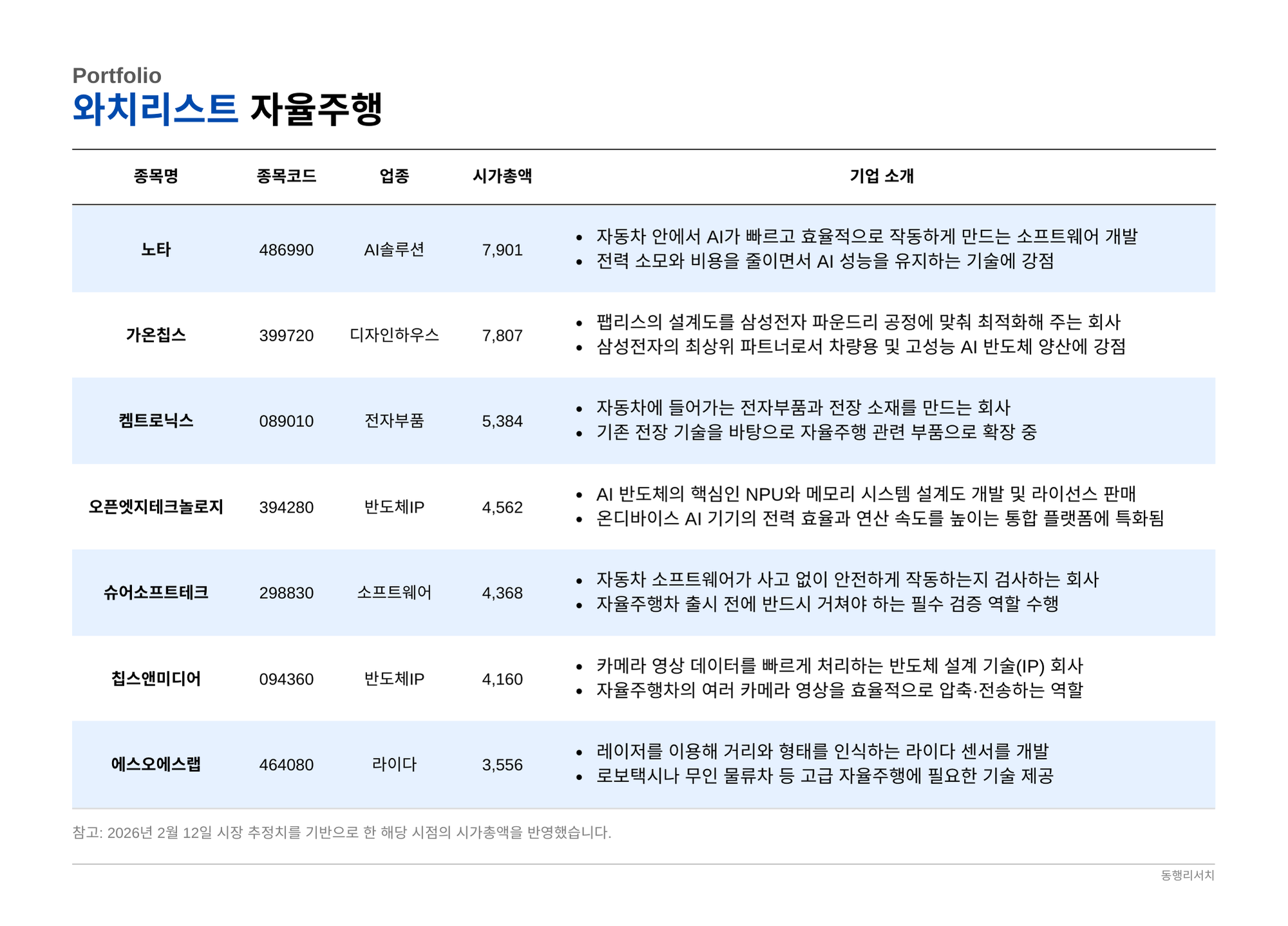 [종목분석] 26.02.12 자율주행 생태계의 숨은 강자는?