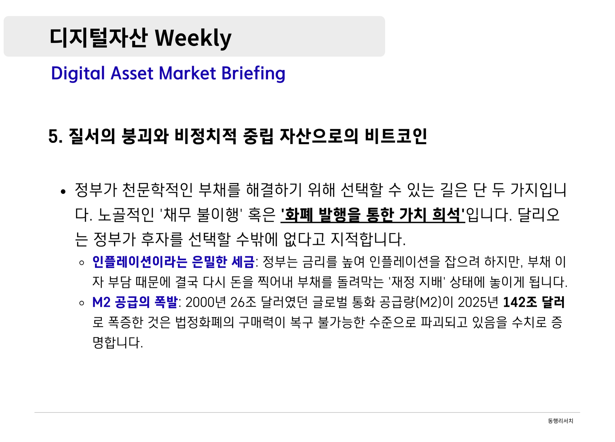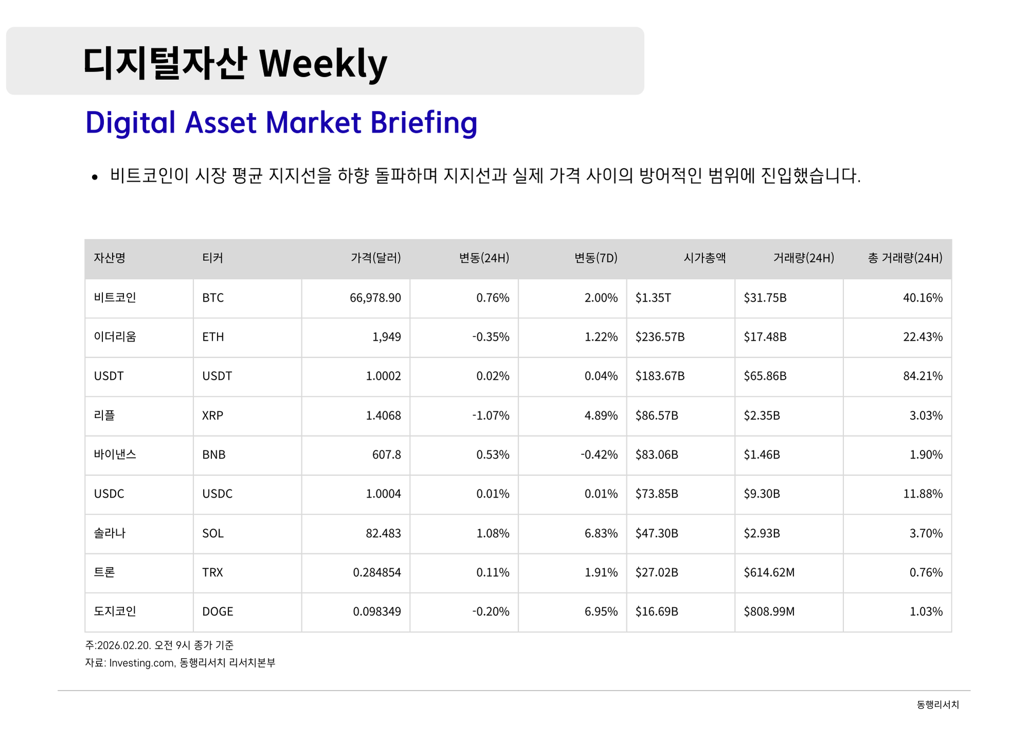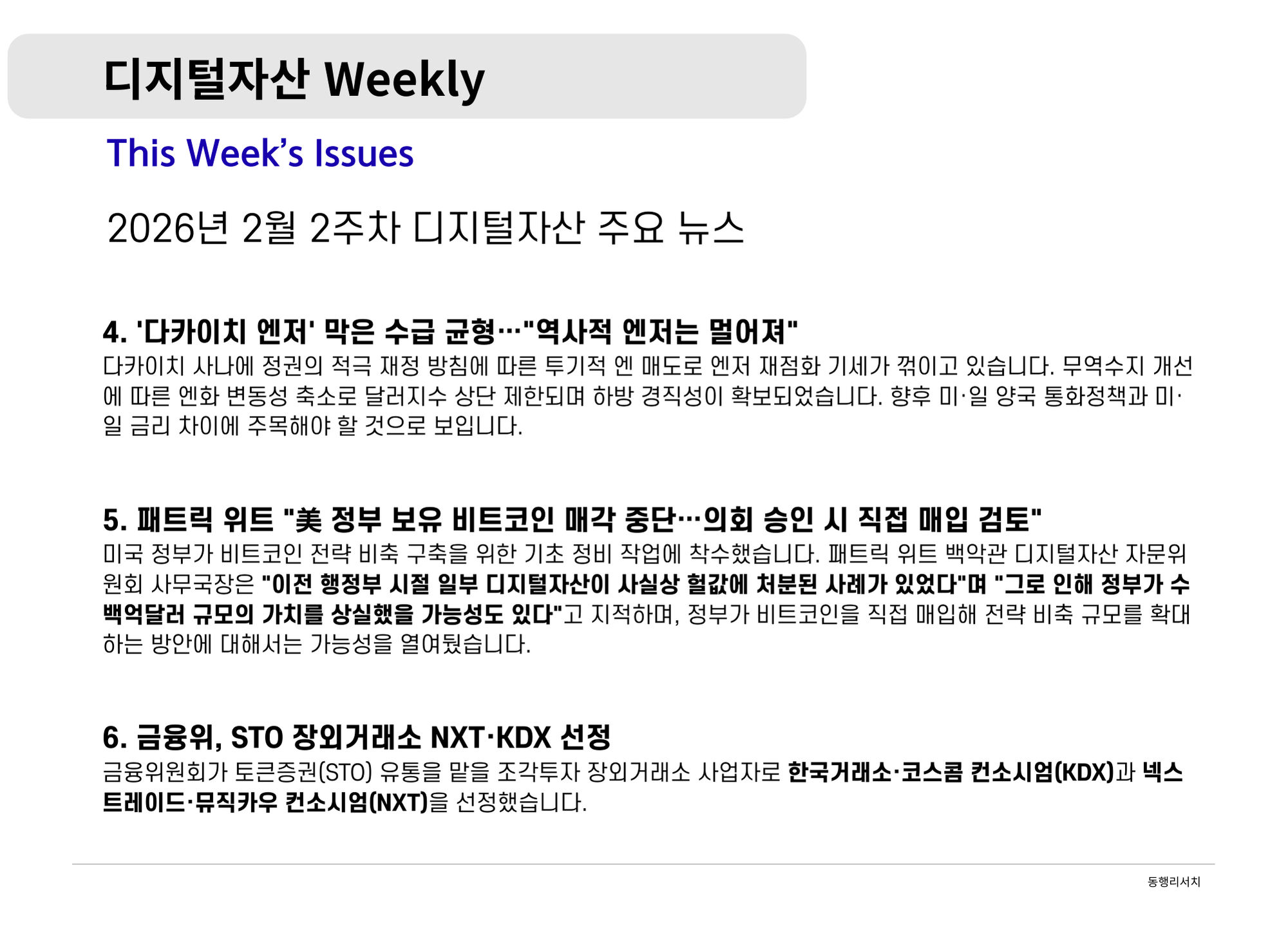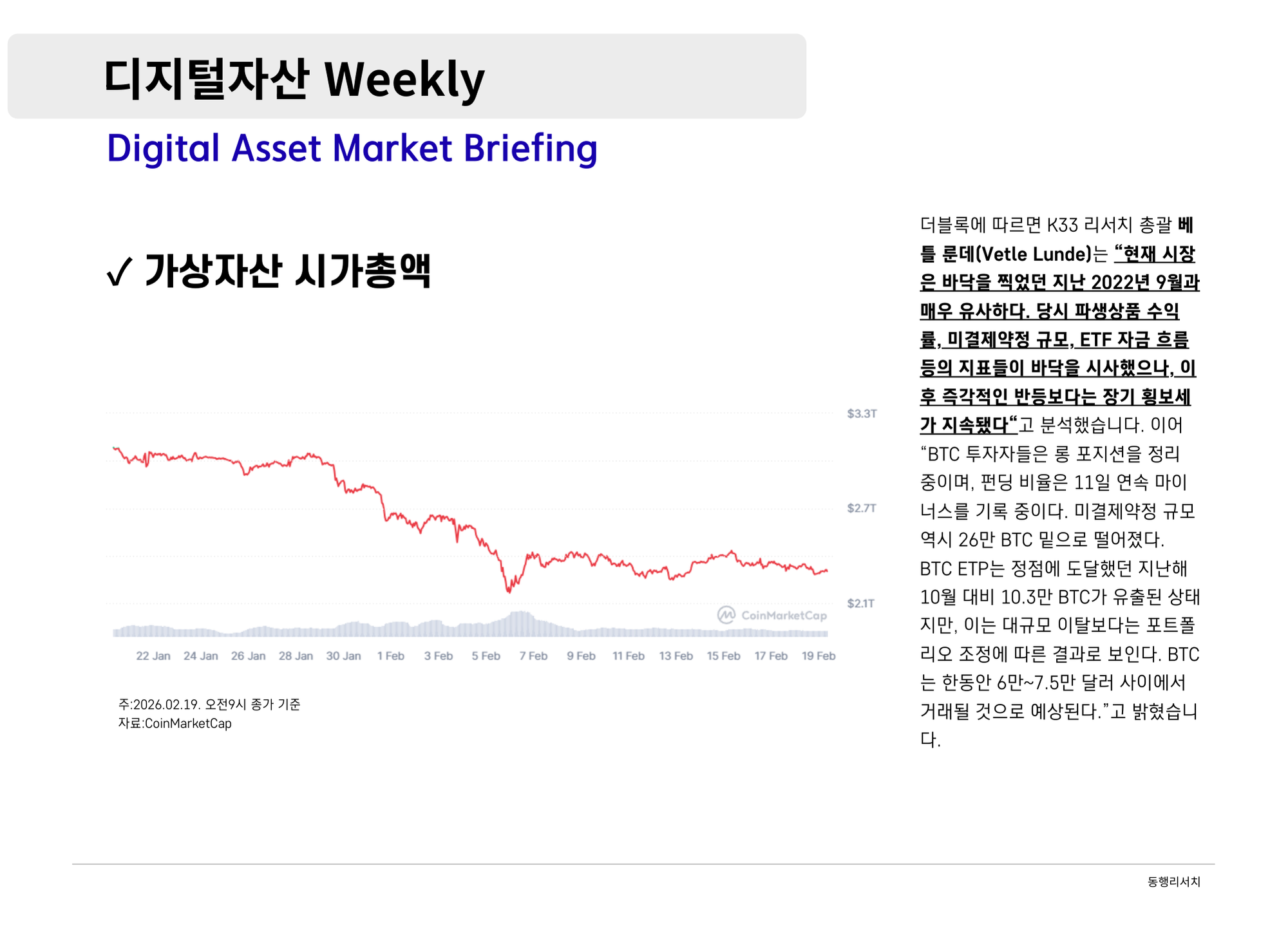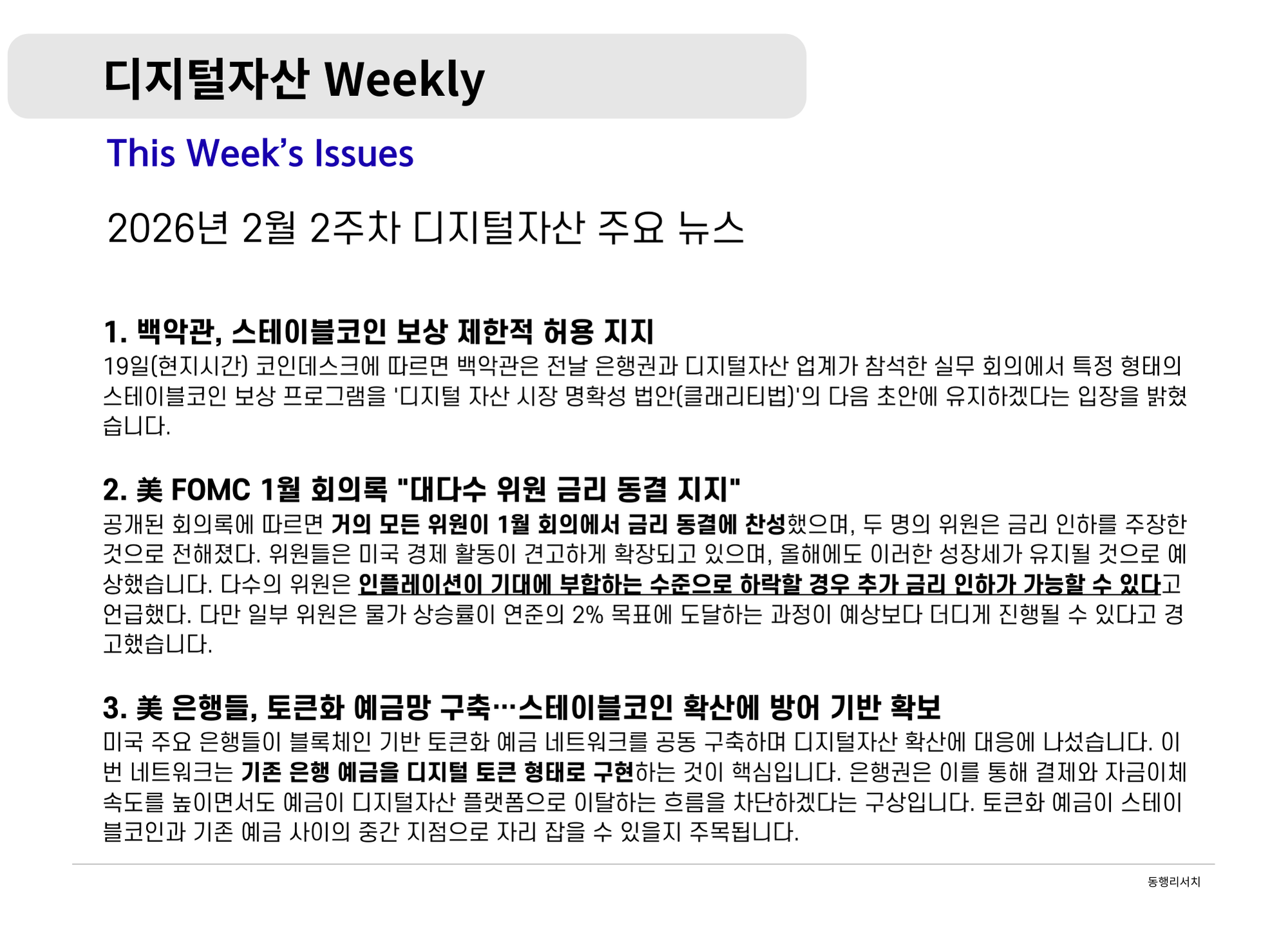 가상자산 [2026.2.20] 디지털자산 Weekly - 비트코인과 스테이블코인:가치 저장 수단과 디지털 현금으로의 행보 나눔인사이트매니저 390 6 0 2026.02.20 19:00