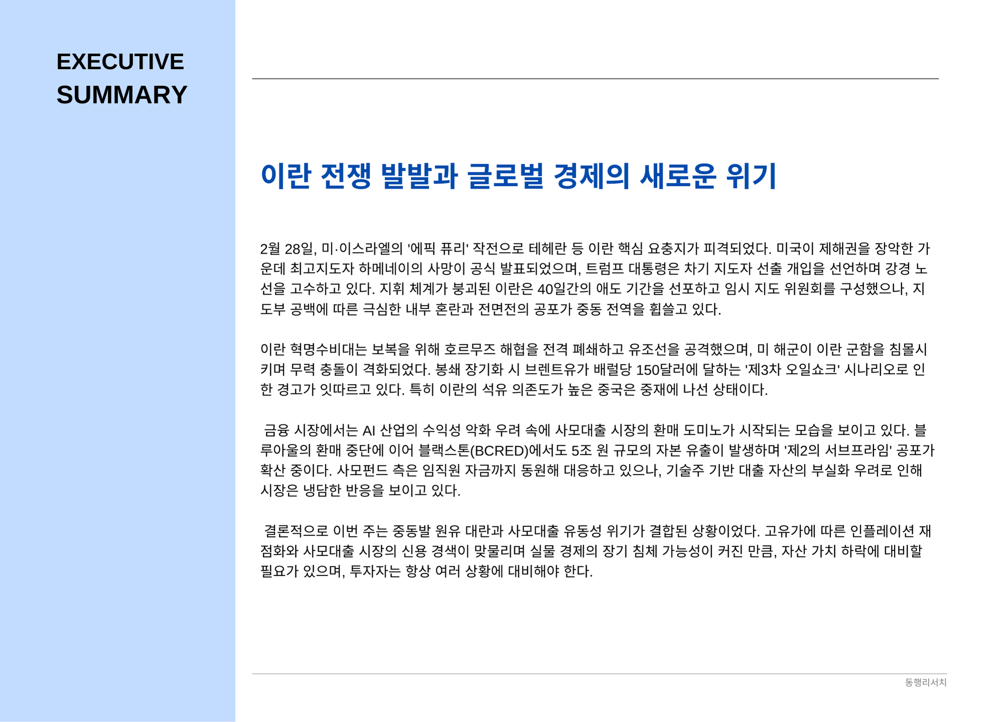 [2026.3.6] 글로벌 자산 포트폴리오 전략 - 이란 전쟁 발발과 글로벌 경제의 새로운 위기